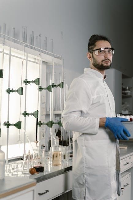 Worksheets comprehensively address vital lab safety areas, including PPE usage, safe chemical handling procedures, and essential emergency response protocols for students.